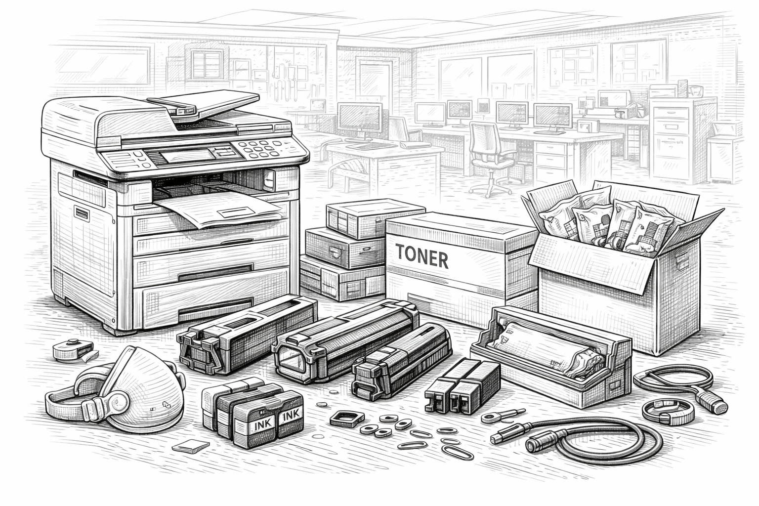 Common needs include printer/toner supplies, device accessories, and operational tech items aligned to department workflows.